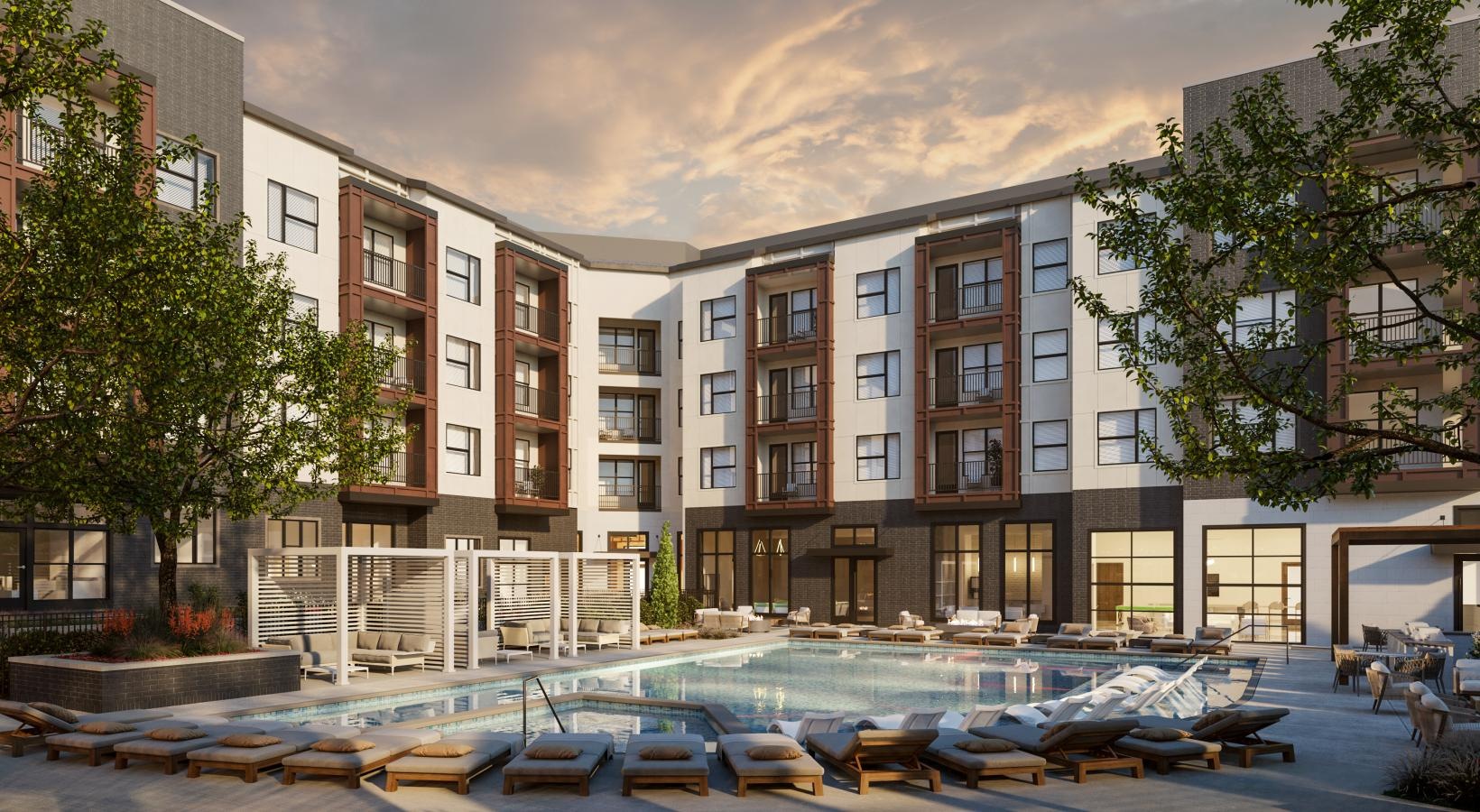 • a swimming pool in front of a building